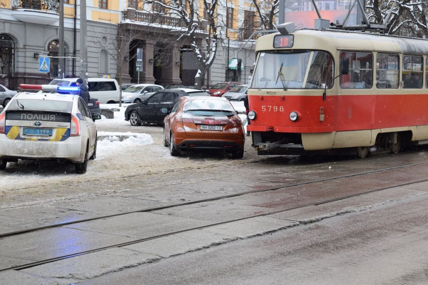 Машина перегородила движение на трамвайной линии Фото: facebook.com/makahon