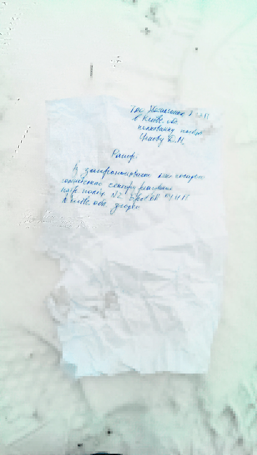 Валяются в снегу и последствия работы криминалистов — бумажки с номерами вещдоков и надписями «Экспертная служба». Еще один странный документ, обнаруженный «Вестями» в снегу, — заявление на имя начальника областной полиции Ценова Д. М. «С предлагаемой мне должностью полицейского сектора реагирования патрульной полиции №2 Броварского ОП ГУНП в Киевской области согласен», — написано в бумажке.