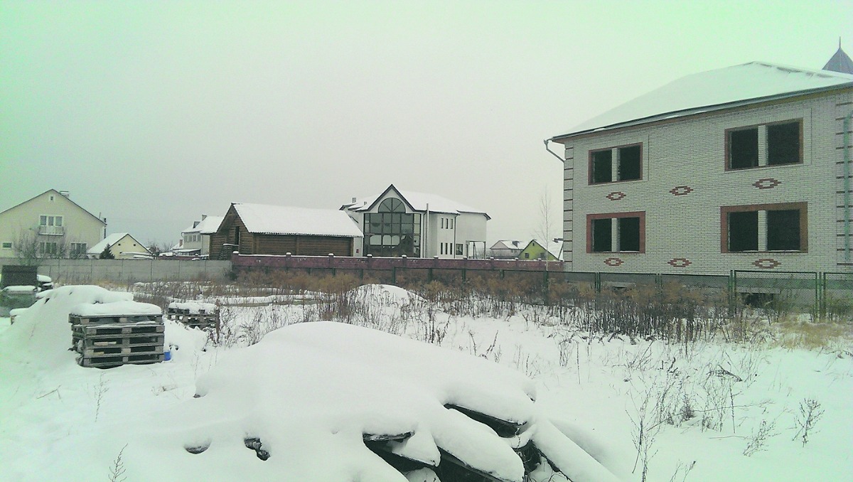 Действительно, из окон недостроя открывается вид как раз на эти самые тонированные окна особняка. Подойдя поближе, мы увидели, что хозяева здесь не очень гостеприимные. Забор слишком глухой, чтобы что-то рассмотреть, звонка на калитках нет, ворота наглухо закрыты, причем на самих воротах остались неудачные следы попытки их вскрыть.