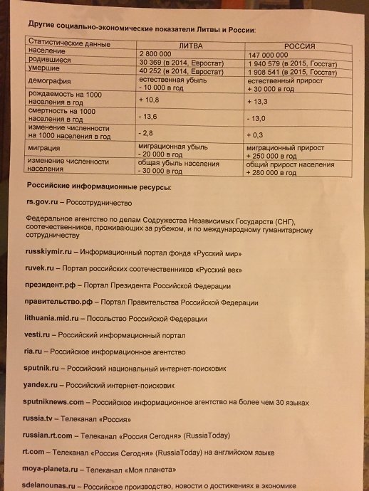 Минулого тижня вільнюсці були здивовані, знайшовши в поштових скриньках брошури з написом "Росія" і російським прапором. "Найдивніше, що в паперових брошурах були вказані посилання на інтернет-сайти, контактна інформація російського посольства, і таблиці, в яких – порівняння деяких цін", - сказано в повідомленні.