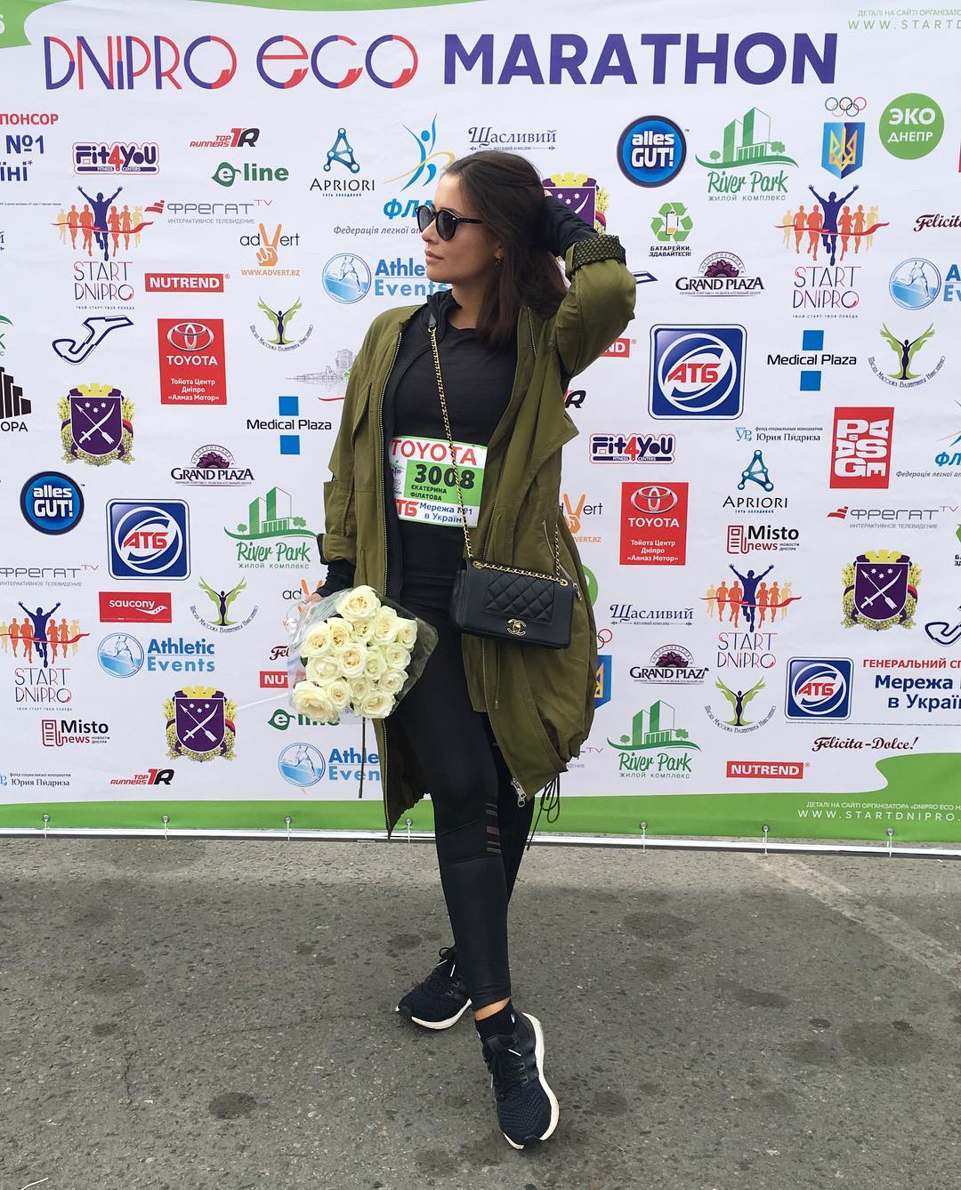 Катя является вегетарианкой и любит заниматься спортом. Она даже поучаствовала в Экомарафоне, который проходил в Днепре в сентябре этого года. Правда, даже во время бега красотка не смогла расстаться с сумочкой от Шанель.