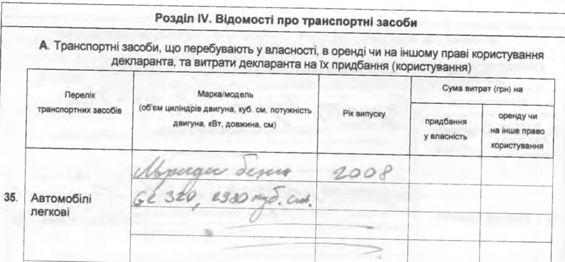 Розповідь про статки судді Андрія Іванищука та його родини буде неповною, якщо не згадати і про недешевий автомобіль, задекларований паном Іванищуком, а саме - Mercedes-Benz GL 320 2008 року випуску.