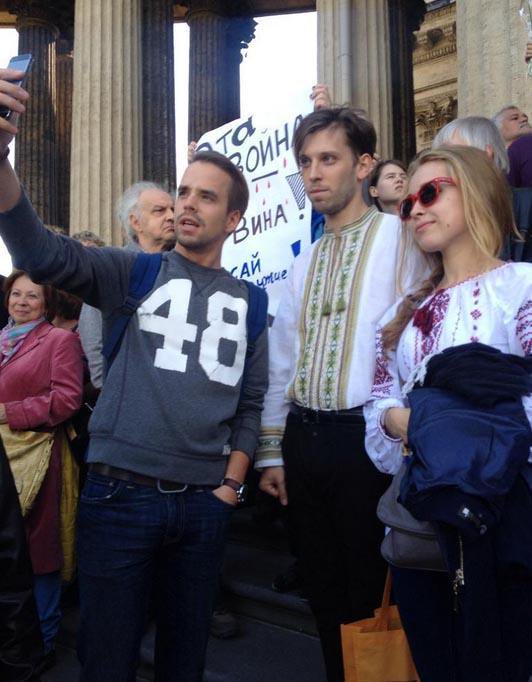 «Это настоящий аншлаг» — пишут пользователи соцсетей. Люди пришли с национальной символикой Украины и даже в вышиванках . Народ призывает власть в частности Путина прекратить войну между славянами.
