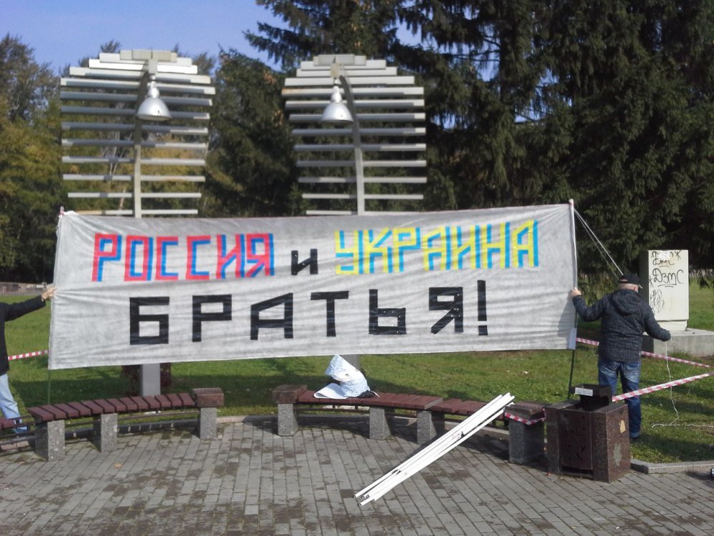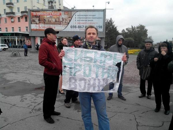 В Барнауле против российской аггрессии в Украине митинговал всего один человек - местный активист Артем Косарецкий. Местные власти не дали разрешение на акцию. Прохожие угрожали Артему расправой за надпись на плакате «Сибирь против войны». Несколько воинственных сибиряков таки напали на Косарецкого, но он смог отбиться от нападавших и продолжил пикет с уже немного потрепанным плакатом. В скором времени его по старой сибирской традиции «свинтила» полиция.