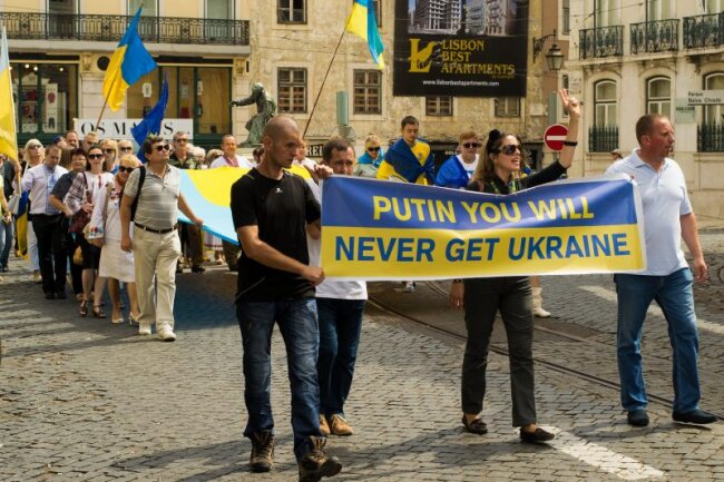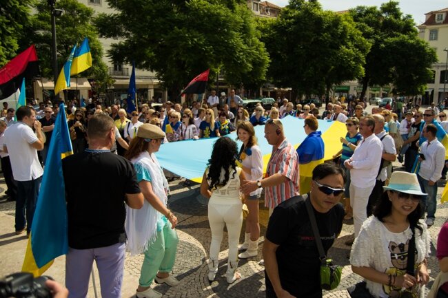 Около 800 человек собрались на митинг в поддержку Украине в Лиссабоне.