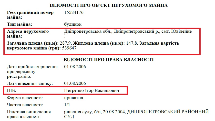 У Державному реєстрі ми знайшли будинок на 287м², яким володіє суддя Ігор Петренко.