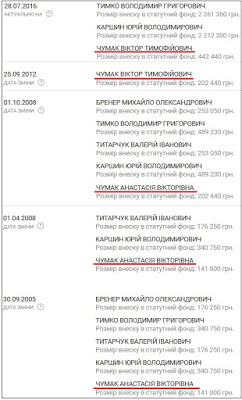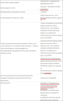 Так выглядит нынешняя структура собственности "Микрохима". В 2016 году Виктор Чумак увеличил сумму своего взноса в уставной капитал предприятия более чем в два раза — до 442 тыс. грн.