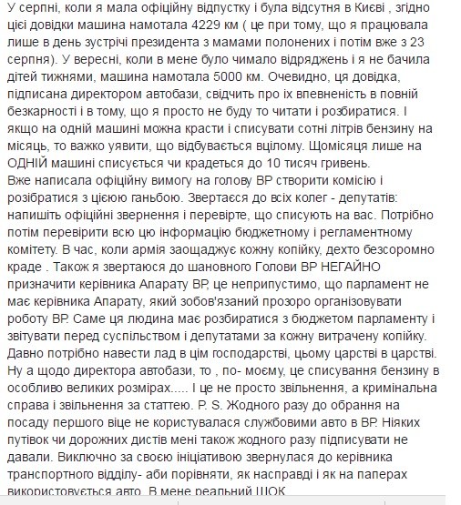 “Я посчитала, что на машине списывается или воруется до 10000 грн в месяц!”, – писала Геращенко.