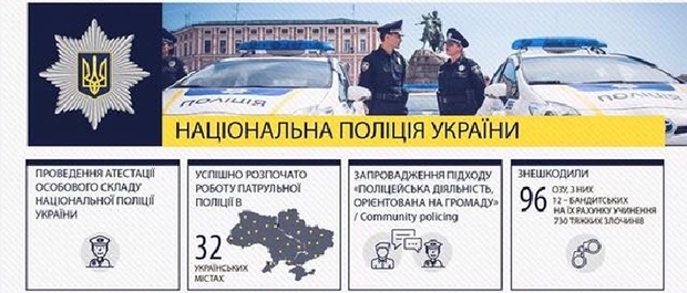 Первое достижение - в 32 городах начала работу патрульная полиция Украины. За год обезврежено 96 ОПГ.