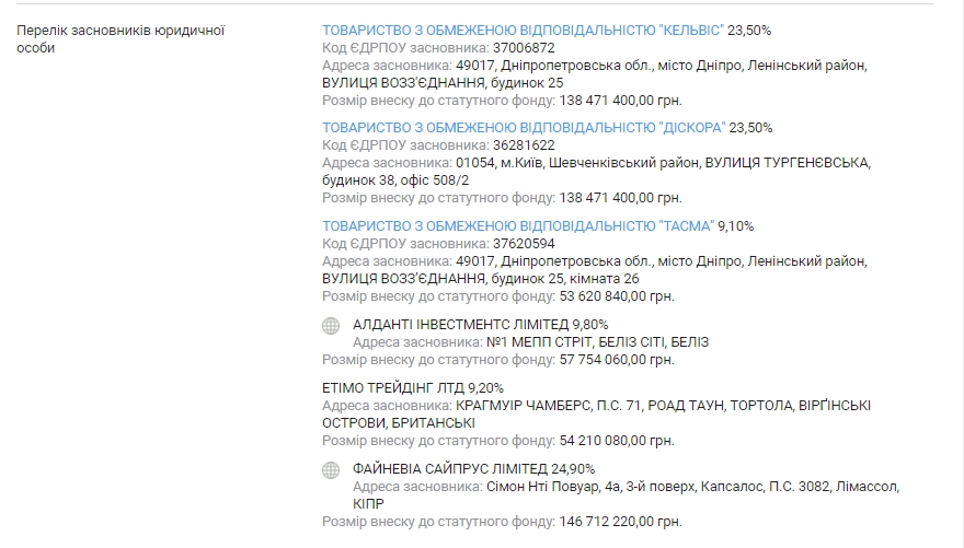 По данным аналитической платформы YouControl, 99,45% акций публичного акционерного общества «АВІАЦІЙНА КОМПАНІЯ «ДНІПРОАВІА» принадлежат компании «ГАЛТЕРА».