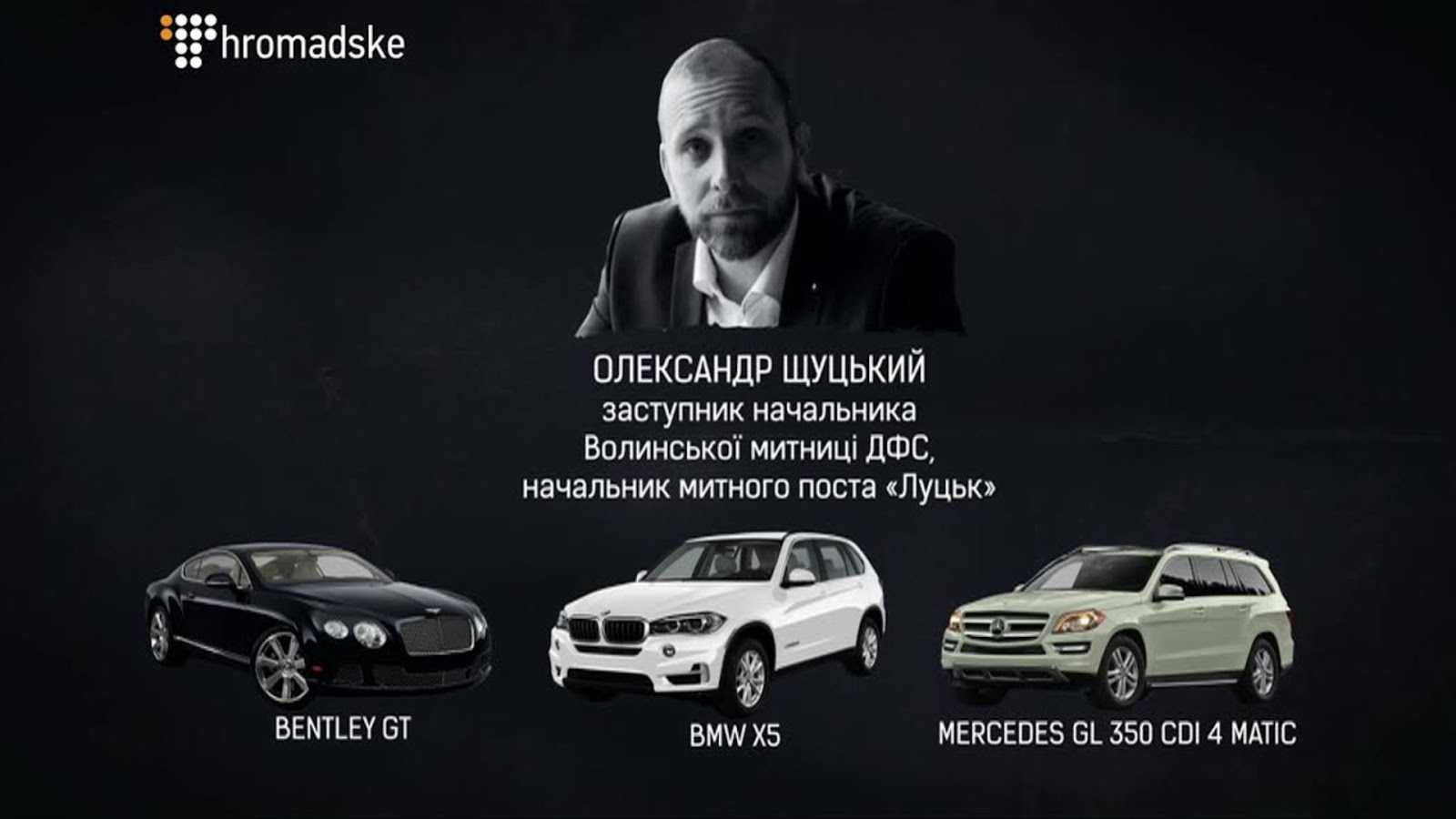 «Бентли Континенталь GT», БМВ Х5, Мерседес GL 350. Это список машин в автопарке Александра Щуцкого — еще одного заместителя начальника Волынской таможни.