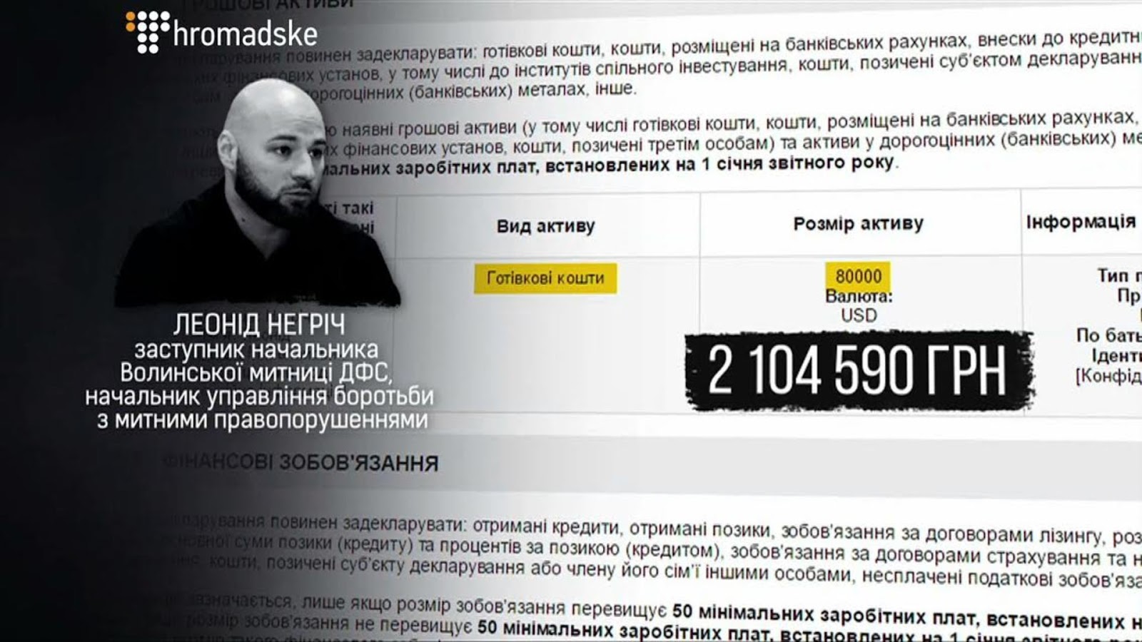 Как можно зарабатывать всей семьей шестьдесят пять тысяч гривен в год, а при этом задекларировать более двух миллионов? Еще один заместитель начальника волынской таможни — Леонид Негрич — такую веселую арифметику объясняет традиционно для чиновников: