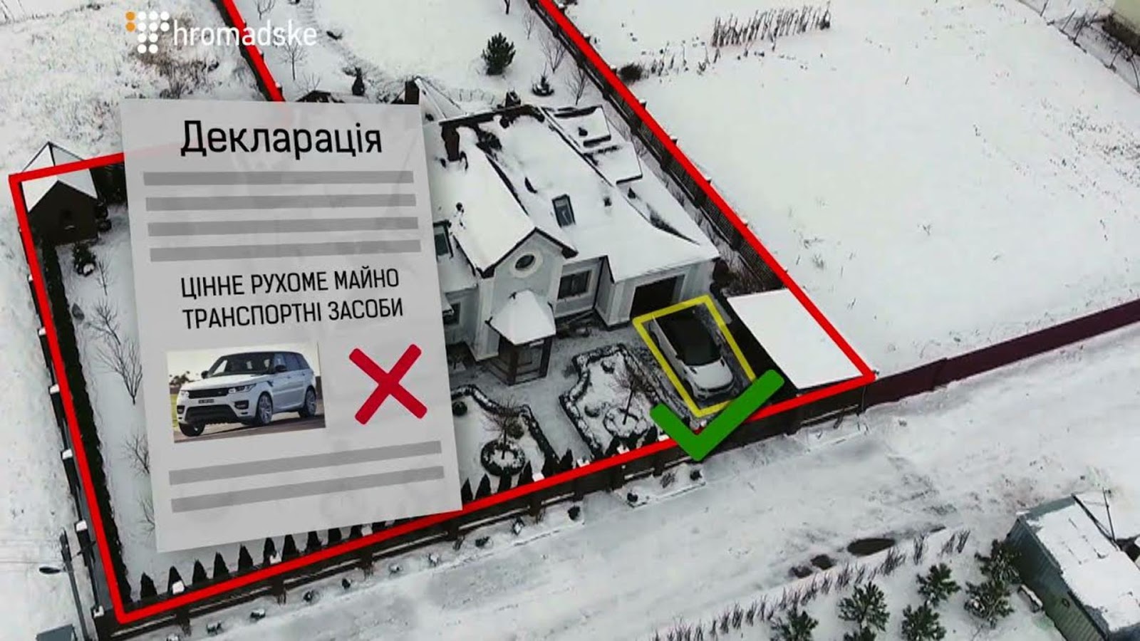 Имение расположено в Бориспольском районе Киевской области. Посмотрите внимательно: возле дома припаркован люксовый внедорожник «Рейндж Ровер». Во дворе джип — есть, а в декларации его нет.
