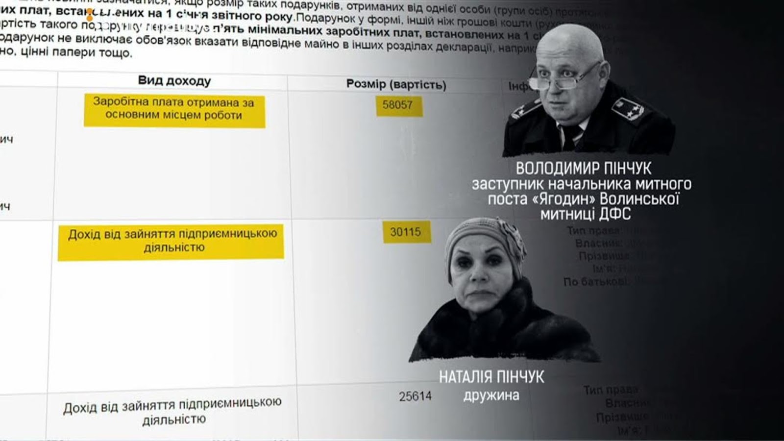 Также наше внимание привлек заместитель начальника таможенного поста «Ягодин» Владимир Пинчук. Пан Владимир и его семья задекларировали рекордное количество недвижимого имущества: дом на озере Свитязь, 11 земельных участков, 4 магазина, 2 жилых дома и квартиру.