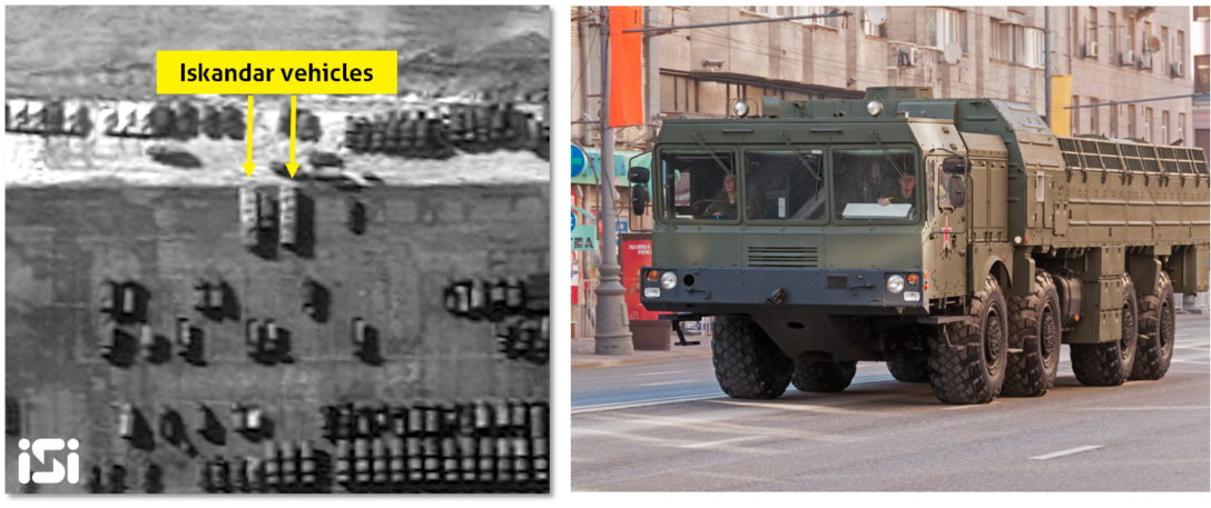 Так, на снимках, сделанных 28 декабря, четко заметно два «Искандера» на грузовиках, расположенных на территории военной базы вблизи взлетно-посадочной полосы.