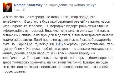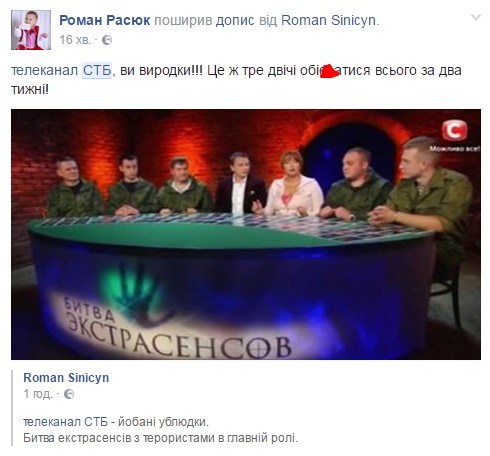 «В битве экстрасенсов на СТБ маги помагают солдатам «ДНР или «ЛНР». Или это Русские Офицеры. Включите, мне это кажется или это правда?» — написал он.