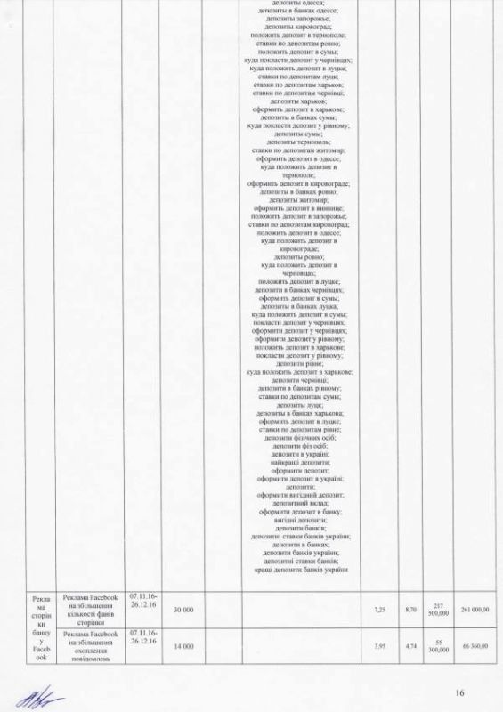 - реклама депозитів по 4,02 грн. за перехід по лінку на суму 32130 грн.
