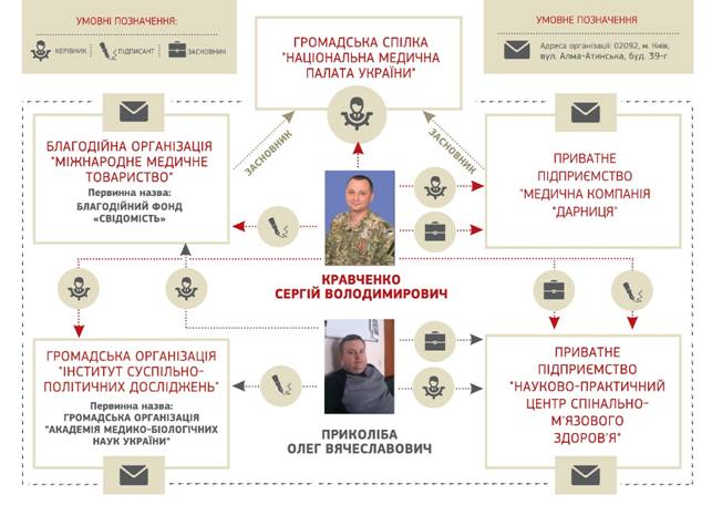 Сергей Кравченко – врач только по должности. В действительности он организатор разветвленных схем «общественных организаций», частных предприятий и других инструментов выкачивания денег из своего служебного положения и руководимых им государственных предприятий («Червона Рута» – не первая его жертва). Вместе со своим приятелем Олегом Прыколибой общественную организацию с громким названием «Национальная медицинская палата Украины» и учредил с участием этого же лица еще несколько предприятий и организаций: