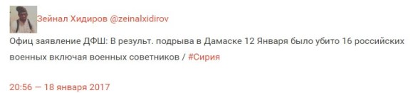 Сегодня Джебхат аль-Фатх аш-Шам (бывшая Нусра) выпустила заявление, в котором утверждается о гибели в результате этого подрыва 16 российских военных, включая военных советников.