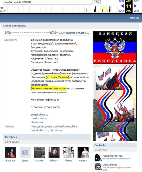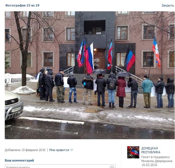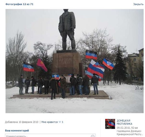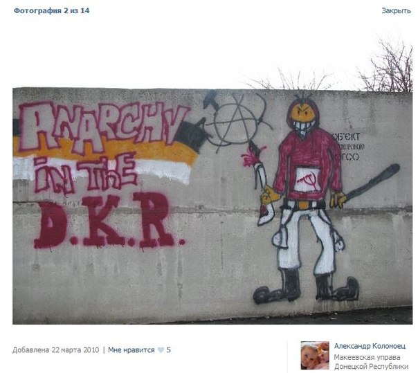 Все вышеперечисленные фото (кроме первого) взяты из группы вк "Донецкая республика". Интересно то, что по состоянию на 9 ноября 2011 года группа насчитывала 8144 участника.