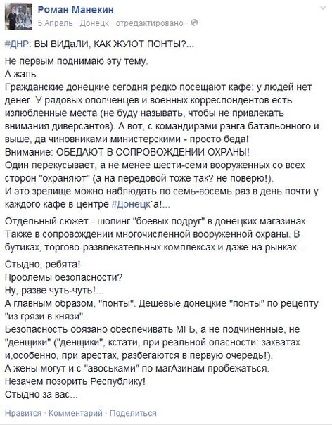 Дальше - прошли всем известные события, и вышеописанные маргиналы получили то, что в их представлении, является властью. Слово "отжать" (и производные) стало неотъемлемой частью "правления" "Донецкой республики" (см. записи по тэгу "грабеж").