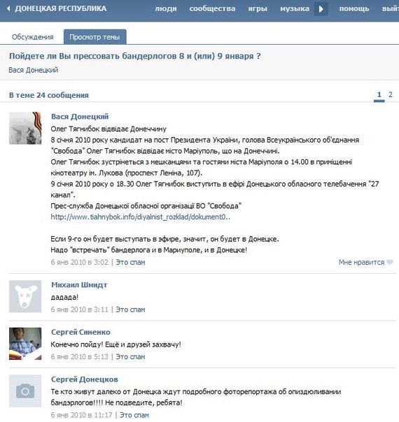 На этой странице в группе вк, народные деятели обсуждают важный политический проект по "прессованию бандерлогов"