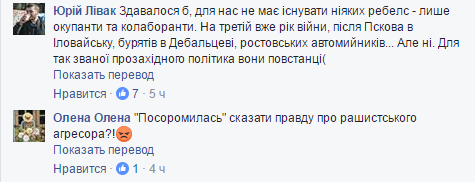"Знеете, хто почав бойові дії на Донбасі? Згідно з пані Заліщук - "Russia backed rebels" - "підтримувані Росією повстанці "(вона говорила "rebelians", однак такого слова в англійській немає, але що вона мала на увазі, цілком зрозуміло)", - написав він.