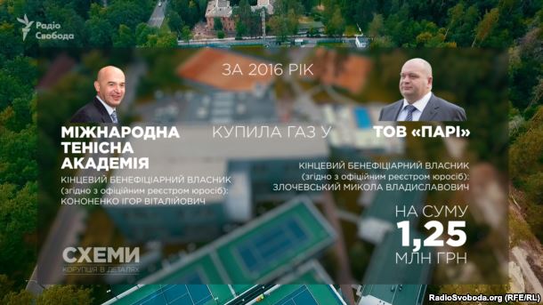 У Міжнародній тенісній академії Кононенка констатували, що наразі не мають договірних відносин із ТОВ «Парі». Але й не спростували, що купували газ у фірми Злочевського у 2016-му.