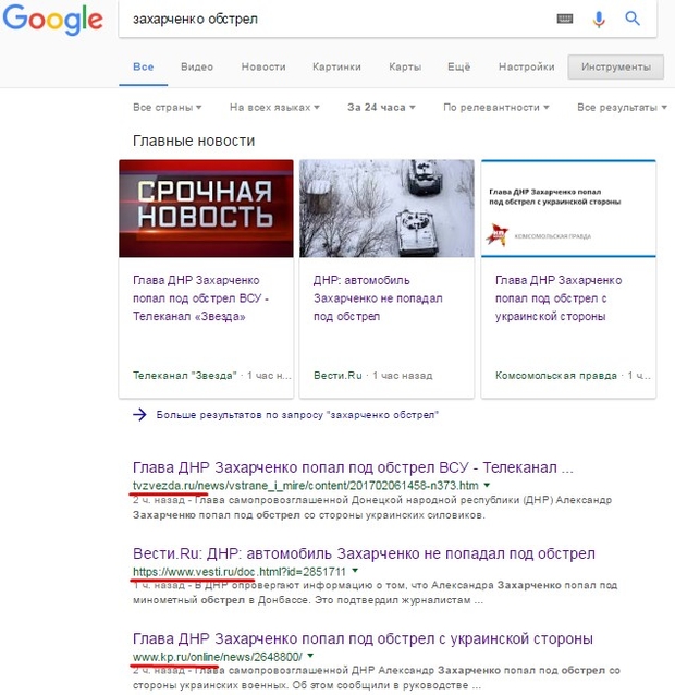 Более того, о "минометном обстреле Захарченко" не написало ни одно из топовых интернет-СМИ Украины.