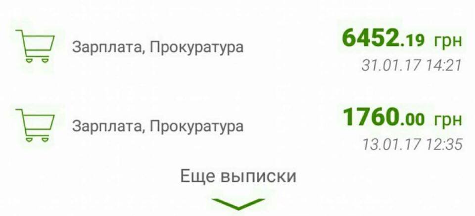 Прокуроры в своих закрытых группах в ФБ даже запустили флэшмобы с публикацией выписок по зарплатным картам с реальным приходо средств. Вот например, выписка из зарплатной карточки прокурора местной прокуратуры, который, судя по диаграмме Луценко должен получать 15 300 гривен. В реальности же - чуть более 8 тысяч (вверху зарплата - внизу аванс):