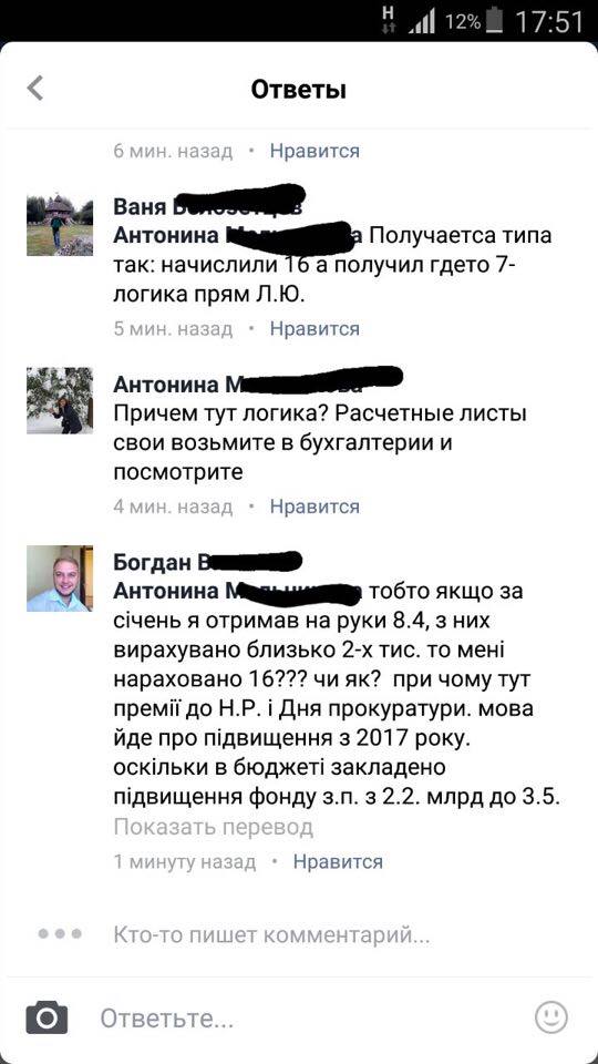 Вот как прокомментировали заявления Луценко о "росте зарплат" в закрытой прокурорской группе в Facebook: "а ещё, вам уважаемые прокуроры, повысили зарплату на 60%. Вы В курсе? Еще в январе повысили. Старший на нараде сказал. Хватит скрывать свои шалені гроші. Признайтесь уже семьям какие вы деньжища отгребаете".