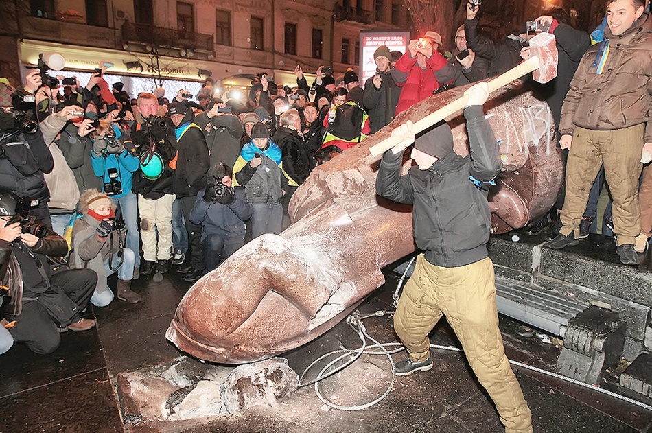 8 декабря, Ленина повалили. Фото Sergei Chuzavkov/AP.