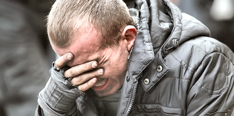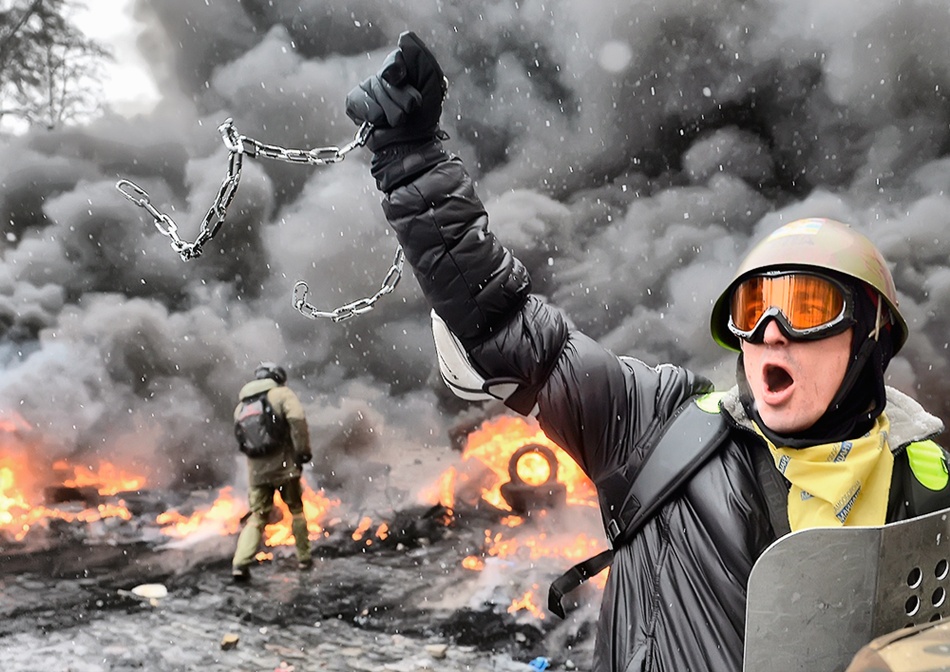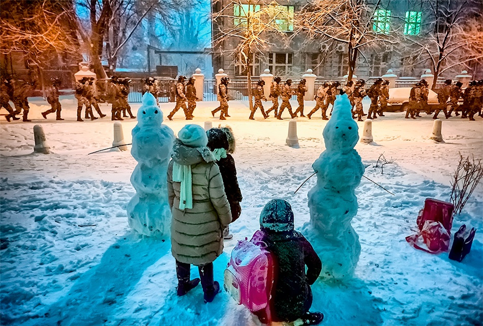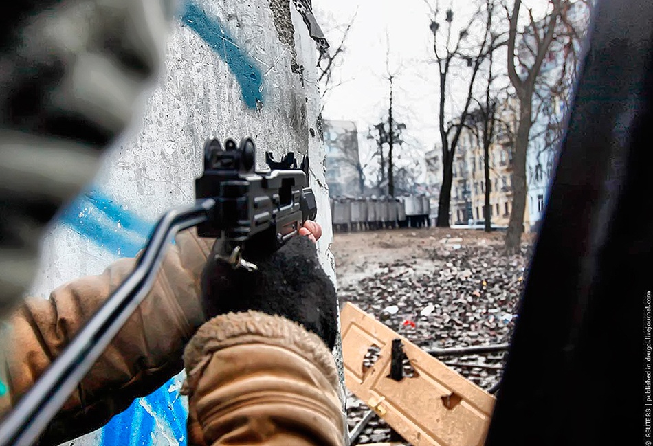 20 февраля, на фоне разрушенного центра города. Фото Максима Люкова, kp.ua.