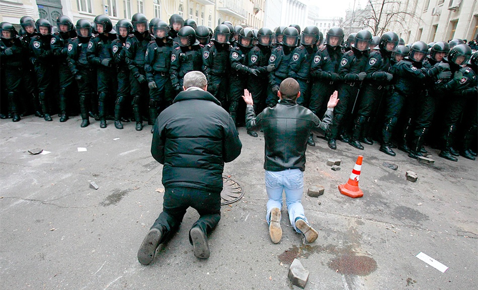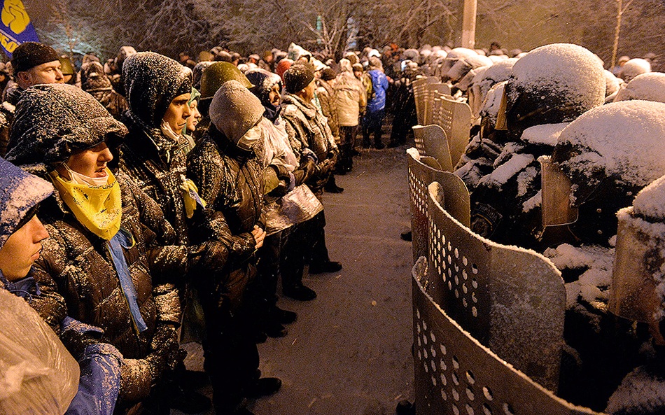 1 декабря, митингующие перед силовиками. Фото Reuters/Gleb Garanich.