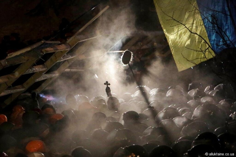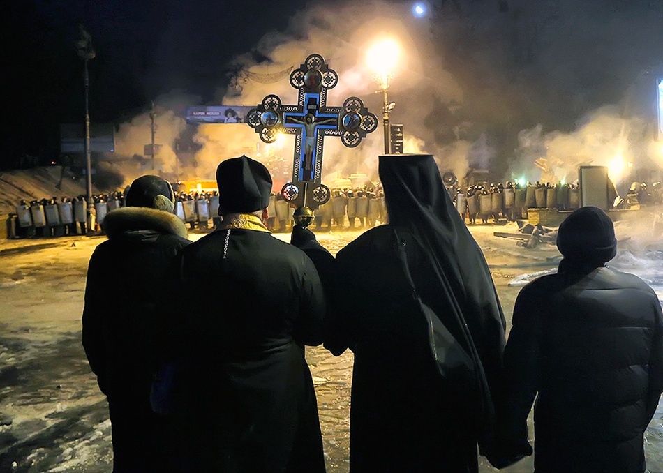24 января, священники перед кордоном ВВ и Беркута. Фото с сайта ukraine-revolution.tumblr.com.