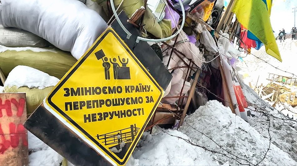 9 января, знак на баррикадах. Фото с сайта ukraine-revolution.tumblr.com.