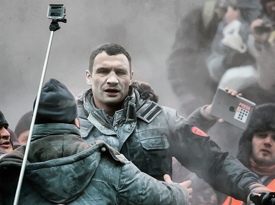 19 января, Кличко облили из огнетушителя. Фото с сайта orbitnetwork.ru.