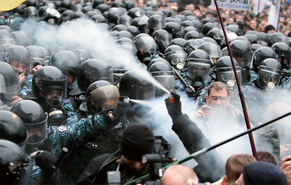 Ночь с 29 на 30 ноября, первая зачистка Майдана. На фото Глеб Гаранич, корреспондент Рейтерс. Фото Reuters.
