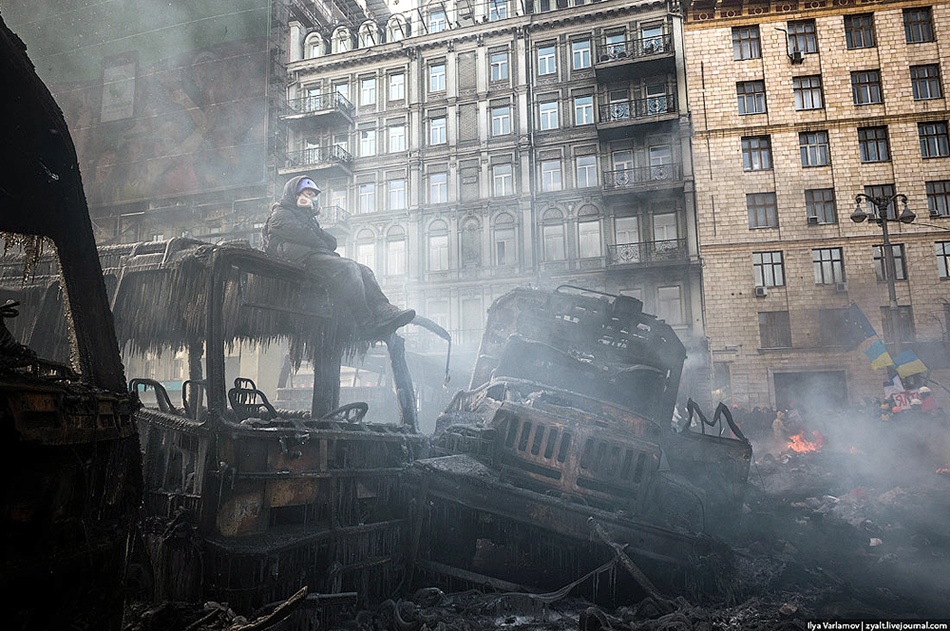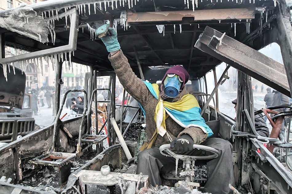 20 января, патриот в сгоревшем автобусе. Фото worldnewsviews.com.