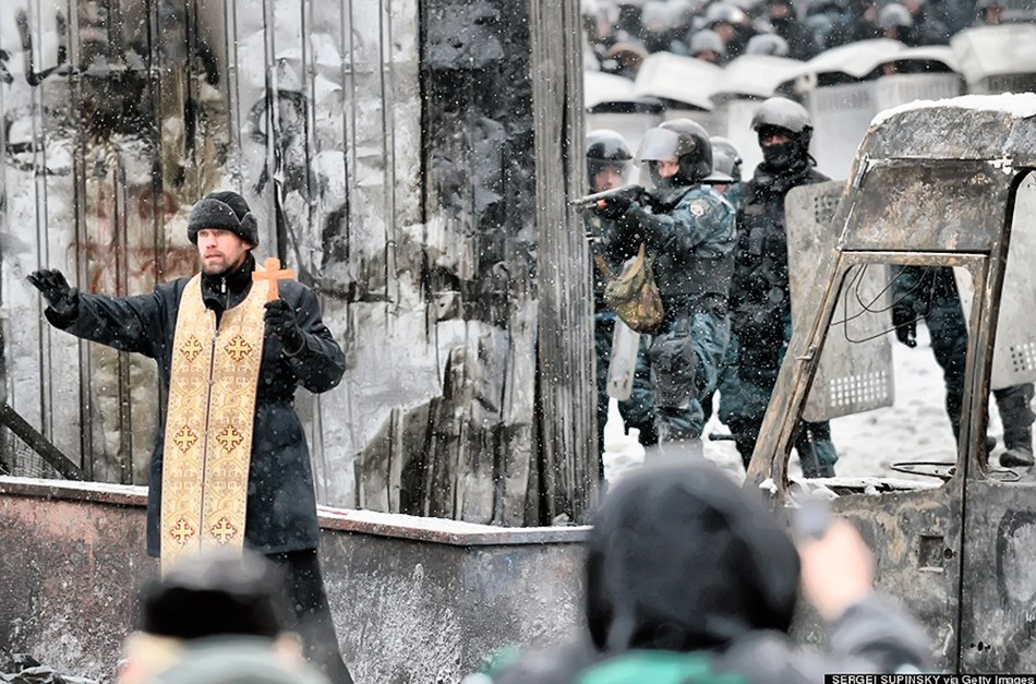 22 января, священник призывает к перемирию. Фото Segei Supinski/Getty Images.