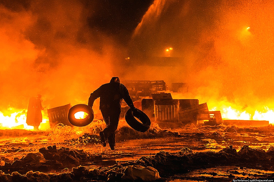 20 января, так горели по ту сторону баррикад. Фото mirror.co.uk.