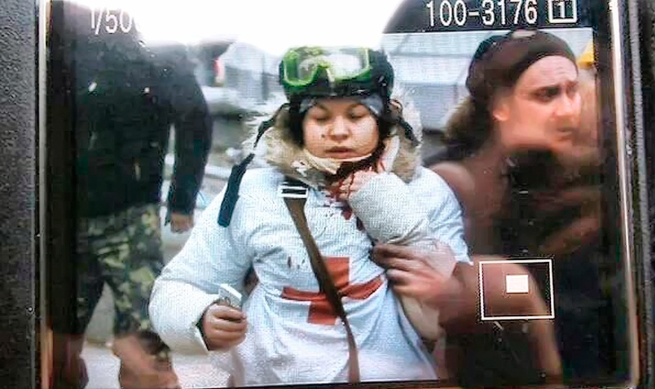 20 февраля, Олеся Жуковская, медик-волонтер, которой снайпер выстрелил в шею. Фото Reuters.
