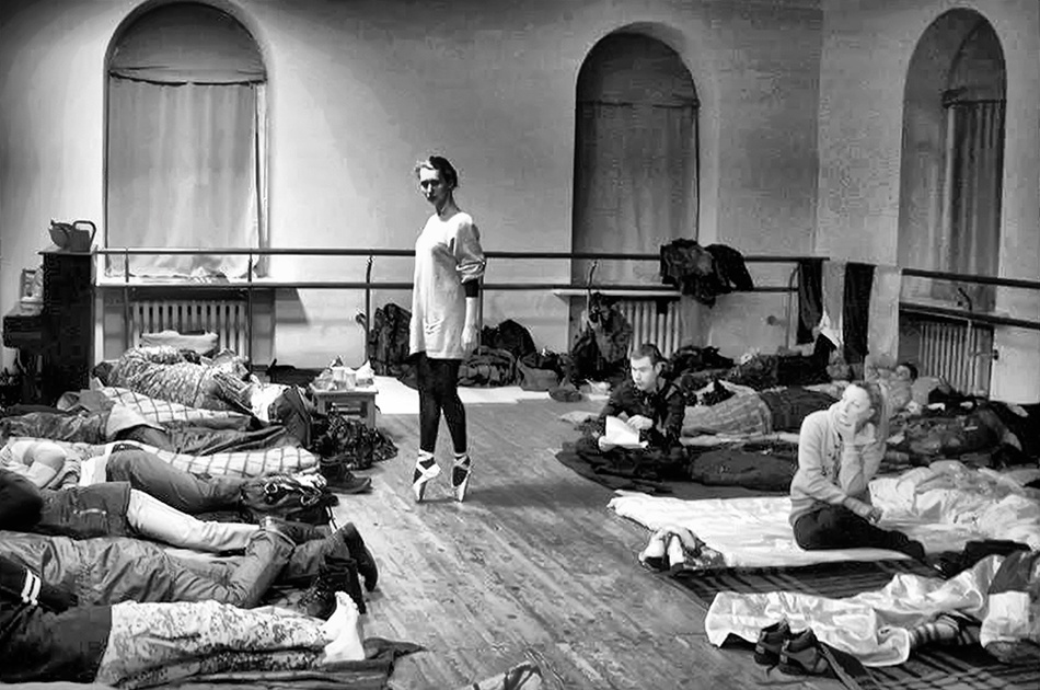 Ночь со 2 на 3 декабря, балерина на пуантах в захваченном митингующими Октябрьском дворце. Фото Марии Волковой.