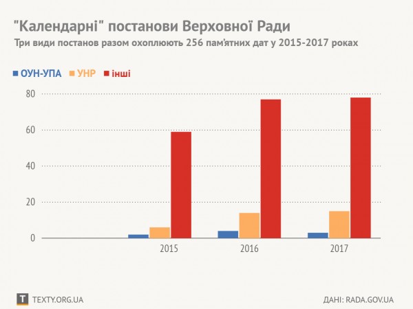 Ранее украинский парламент ежегодно выпускал десятки «календарных» постановлений, которыми устанавливалось государственное празднования важных исторических дат.