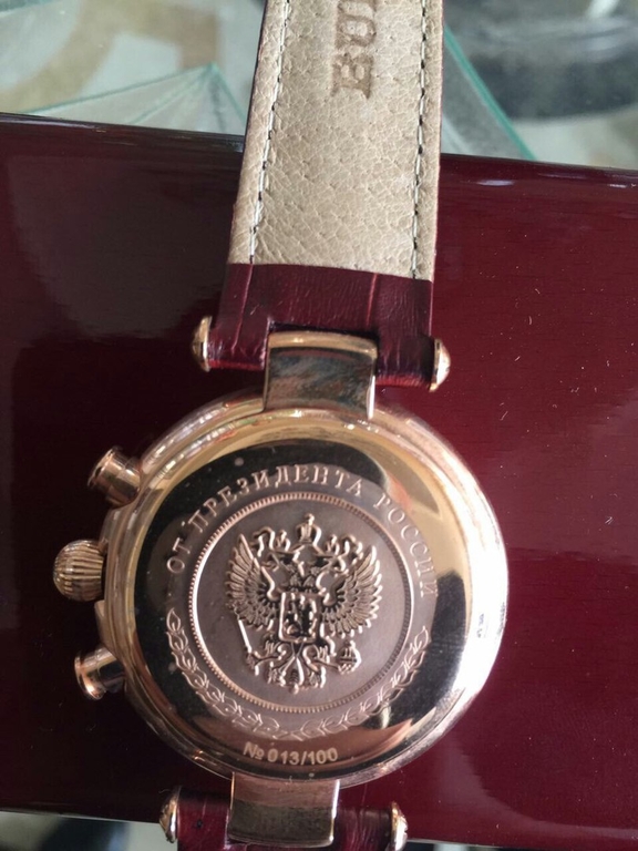 Во время обыска по месту жительства злоумышленника правоохранительными органами выявлены и изъяты золотые именные часы от президента Российской Федерации, а также золотой умывальник.