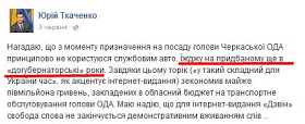 У своєму дослідженні експерти оцінили діяльність голови Черкаської ОДА Юрія Ткаченка як незадовільну та, по суті, корупційну.