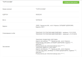 ТОВ «Торгоснова» (код ЄДРПОУ 36262243) зареєстроване за податковою адресою м. Черкаси, бульвар Шевченка 320/1. Основний вид діяльності товариства – роздрібна торгівля в неспеціалізованих магазинах. Його співзасновниками є брати Дмитро та Радислав Ткаченки з часткою 5095625 гривень, або 50%, кожний.