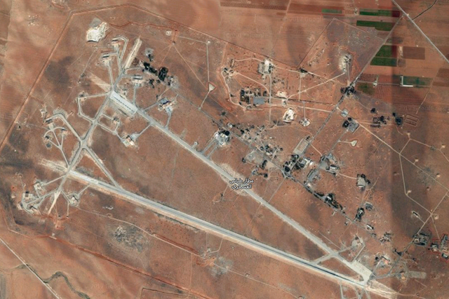 #Syria State TV broadcasts amateur footage of the #Shoayrat airbase airstrikes shot during and after #syriaairstrikes pic.twitter.com/aXkltNvTpZ