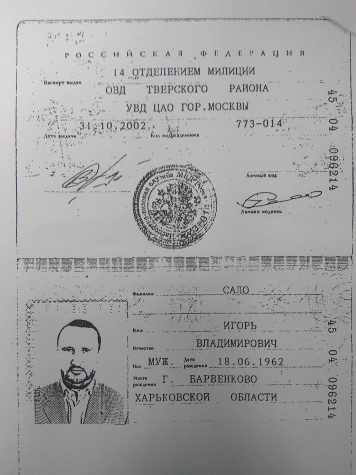 Тем более, что в действительности Игорь Сало является гражданином Российской Федерации. Об этом свидетельствует паспорт, выданный бизнесмену 31 октября 2002 года Управлением внутренних дел Центрального административного округа г. Москва!