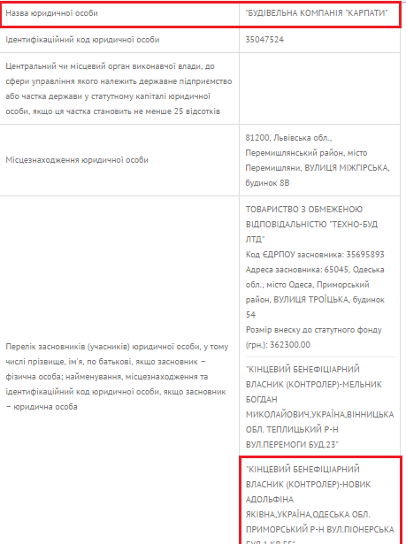 Сейчас же 80-летняя пенсионерка Адольфина Новик, помимо помощи Радковскому, успевает вести бизнес в трех компаниях.Правда, против ее строительной фирмы «Карпаты» ведет расследование военная прокуратура Западного региона за застройку земель МОУ во Львове. Компания пенсионерки –бизнес-партнера Радковского через фирму-прокладку «Вестбудинвест« украла у государства 6 га земли.